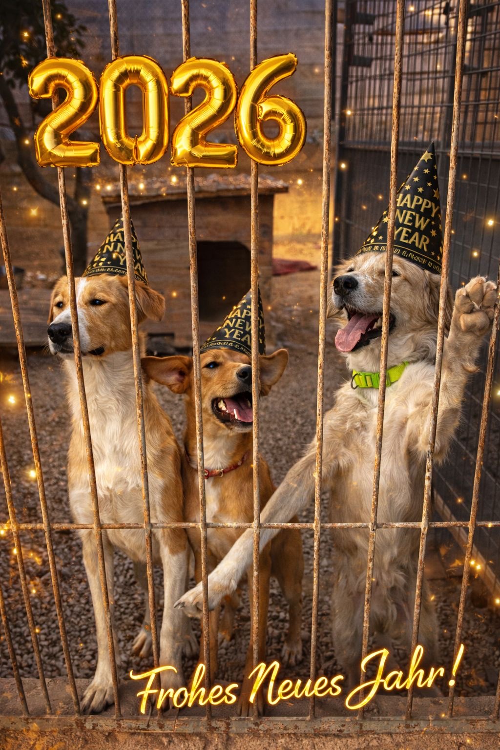 Frohes neues Jahr 2026! Die Hundehilfe Deutschland e. V. wünscht euch von Herzen ein gesundes, glückliches und friedliches neues Jahr! 2025 war wieder voller Herausforderungen