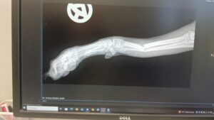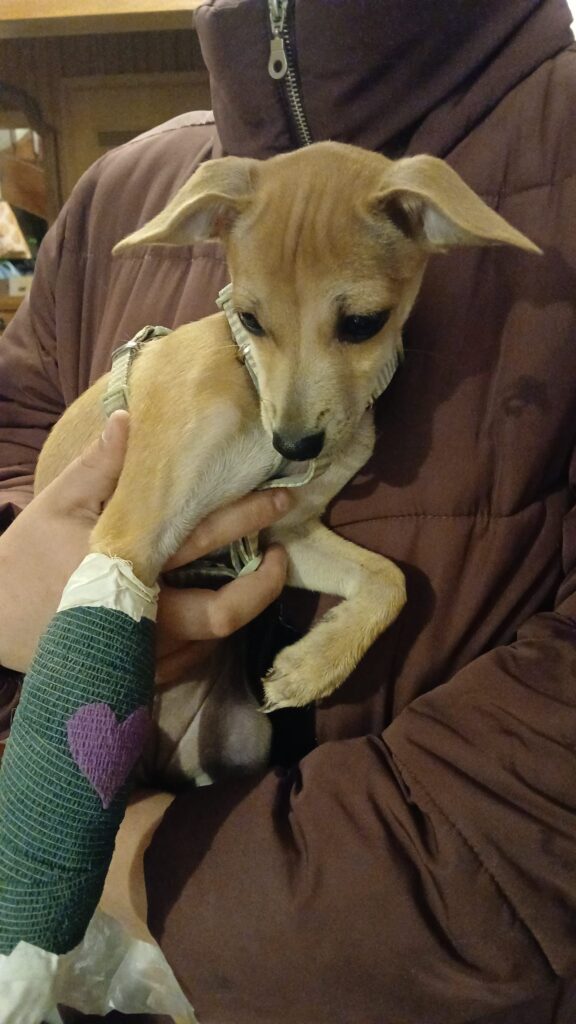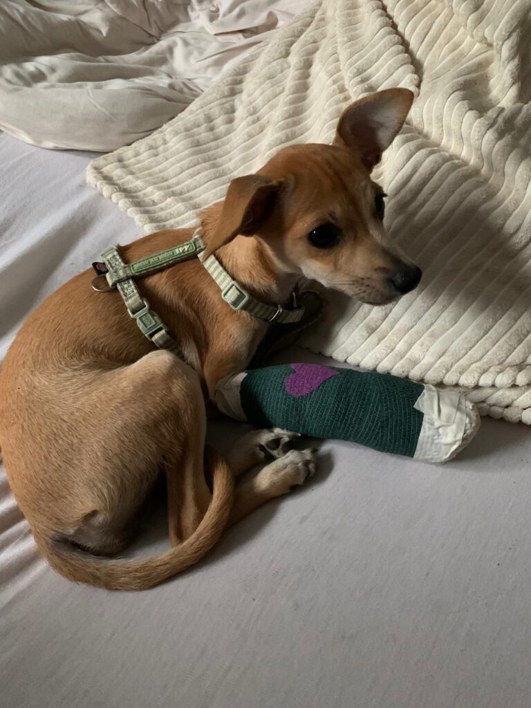 Lea ist gerade einmal 4,5 Monate alt und hat sich ihr Vorderbein ganz unglücklich gebrochen.